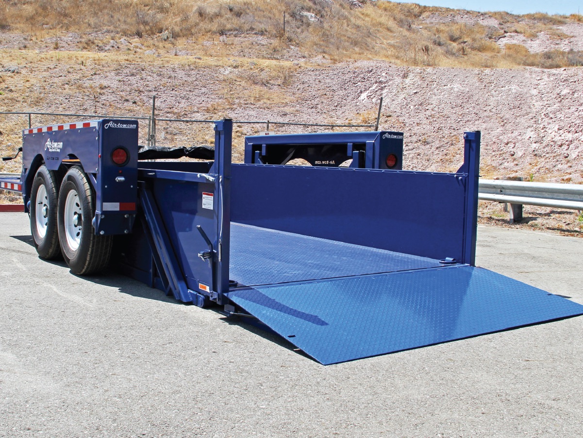 The widely popular 3D (Drop-Deck & Dump) model is the world’s only trailer of its kind – offering the dual-purpose flexibility of being both a drop-deck and dump trailer all in one heavy-duty vehicle. With a full 149″ internal deck length and 74″ deck width combined with a 10,000 lb equipment capacity (8,000 dump capacity), you can fit most any piece of equipment to handle just about every job, large or small. The Airtow 3D takes up half the yard space with none of the maintenance issues of two, other equipment and dump trailer combinations.