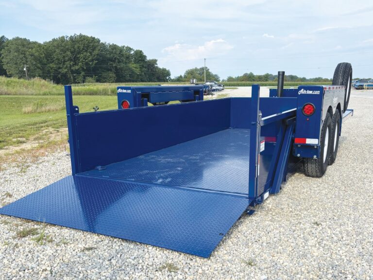 The widely popular 3D (Drop-Deck & Dump) model is the world’s only trailer of its kind – offering the dual-purpose flexibility of being both a drop-deck and dump trailer all in one heavy-duty vehicle. With a full 173″ internal deck length and 74″ deck width combined with a 12,000 lb equipment capacity (12,000 dump capacity), you can fit most any piece of equipment to handle just about every job, large or small. The Airtow 3D takes up half the yard space with none of the maintenance issues of two, other equipment and dump trailer combinations.