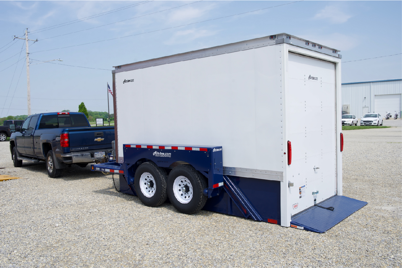 The Enclosed Airtow Trailer models are the first of their kind and built on the rugged Airtow 12’, 14’ or 16’ utility trailers and come with a heavy-duty but lightweight enclosure made with galvanized Z-bars and sturdy siding. Even down to the latch mechanism for the doors, we opted to steer away from the cheap/flimsy traditional flaps used on enclosed trailers and went with the cam-lock system like you see on commercial semi-trucks that join the doors together and to the frame at the top, center, and bottom making it a mobile vault for your equipment or cargo.