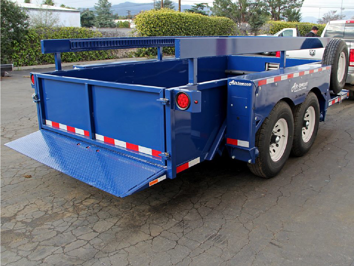 Enjoy the same features as the flatbed trailers but with the added convenience of side walls. It is safe and east to enter the trailer at ground level. The full-width, low-angle ramp makes loading with a hand cart or dolly a simple operation. Air-tow Utility models have a wide variety of options to fit your exact needs.
