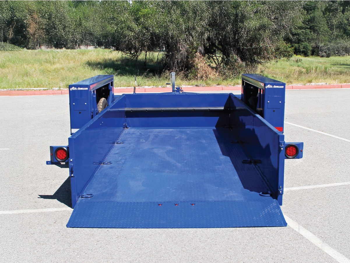 Enjoy the same features as the flatbed trailers but with the added convenience of side walls. It is safe and east to enter the trailer at ground level. The full-width, low-angle ramp makes loading with a hand cart or dolly a simple operation. Air-tow Utility models have a wide variety of options to fit your exact needs.